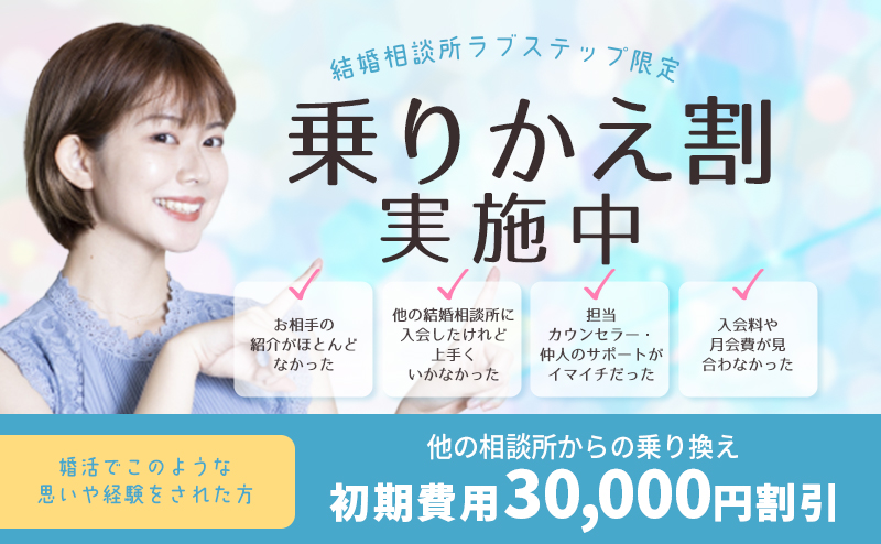 結婚相談所によっては「他の結婚相談所からの乗りかえキャンペーン」などを実施しているところもありますので、調べておいた方が良いでしょう。